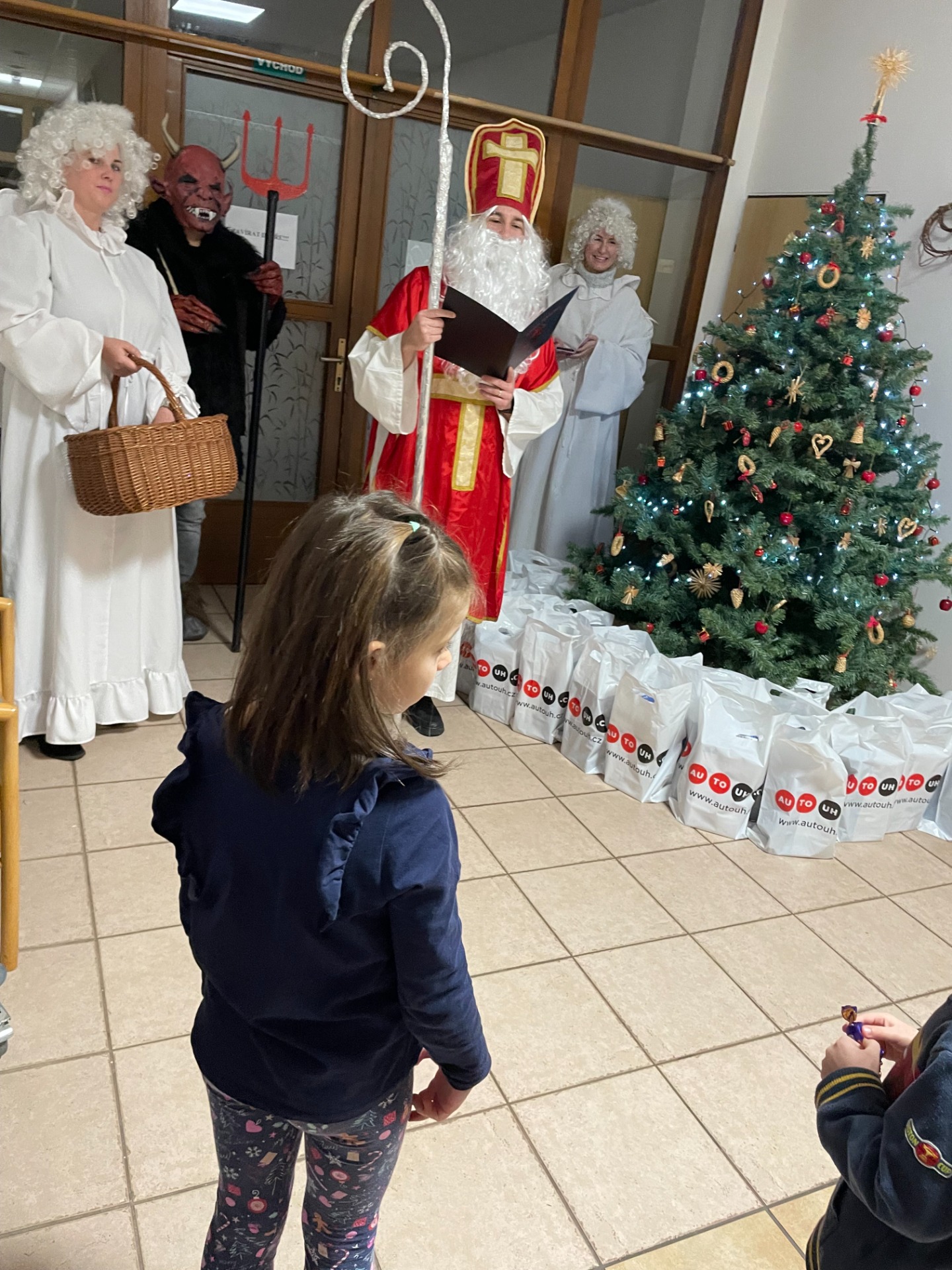 Rádi bychom srdečně poděkovali zaměstnancům AUTO UH za krásnou mikulášskou návštěvu našich dětí. Mikuláš, anděl i čert vytvořili úžasnou atmosféru a dětem připravili štědrou nadílku – každé dítě dostalo lampičku na stůl a sladkou odměnu.
